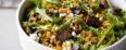 - Add the farro, figs, and arugula and toss well. Crumble the feta over the top and toss again. Serve warm or at room temperature.